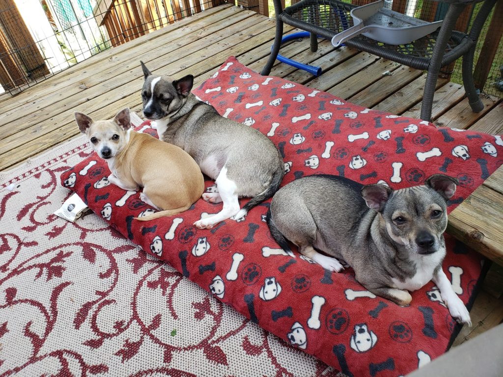 Below is Mr. Cornelius, who has Cushing’s which caused Diabetes. He was a very sick puppy. He is doing better now. On a strict diet; medications and is back to his old bouncy self. We are thankful that we could afford the treatment. Another family wasn’t as lucky. They opted to put down their puppy with the same diagnosis because they could not afford treatment. These diseases restrict the life of the dog to 2 years once diagnosed. Help us get them treatments so they can live longer. These diseases pop up at age 8. The rest of the gang is Yoshi and Nacho. All brothers from the same liter.